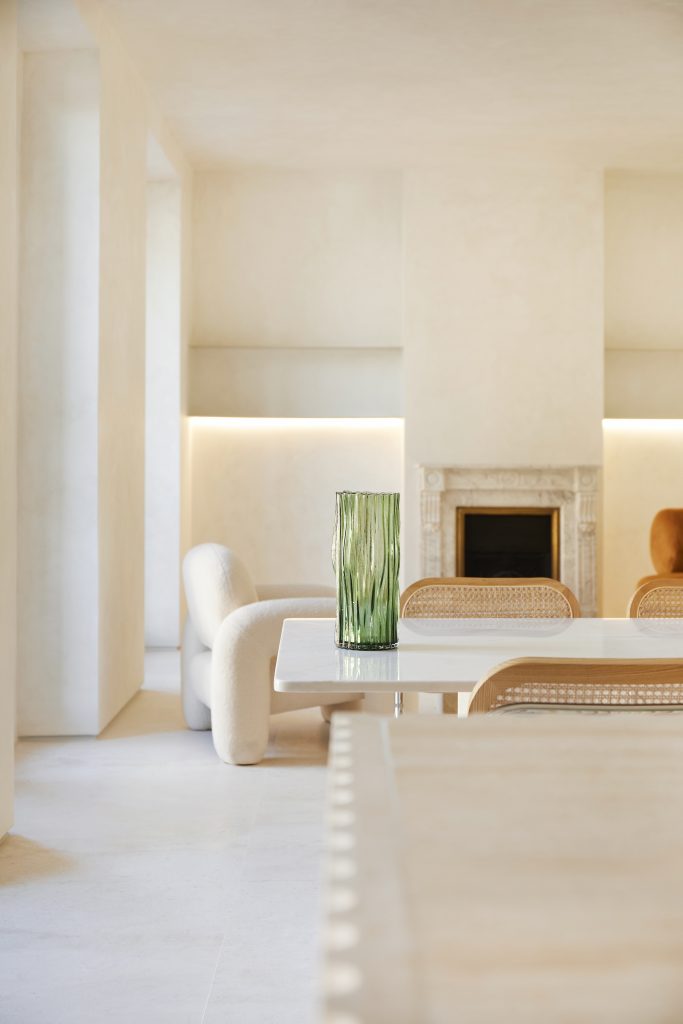 Natural stone flooring introduces a sense of timeless elegance, grounding the interior with its organic textures and subtle hues. Bespoke furnishings and fixtures, crafted with precision and modern sensibility, provide a refined contrast while enhancing functionality and aesthetic coherence.