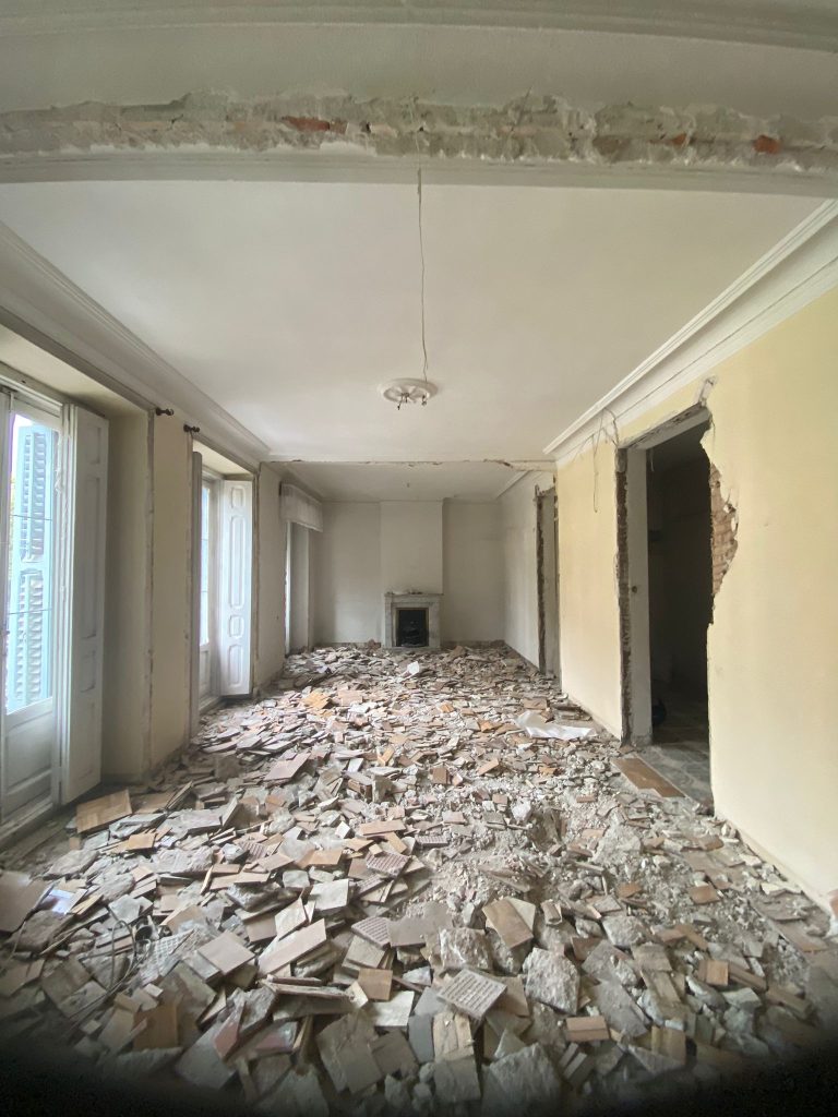 This apartment renovation in central Madrid artfully bridges the historic charm of the original architecture with contemporary sophistication. The intervention preserves and restores elements of significant architectural value, such as intricate moldings, traditional wooden joinery, and decorative ironwork, ensuring their integration into the new design.